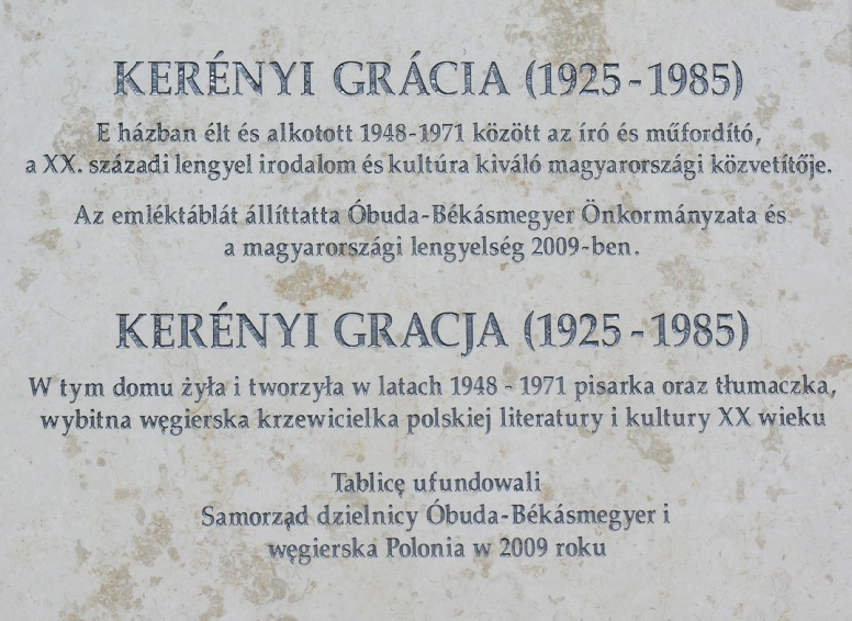 Kerényi Grácia emléktábla