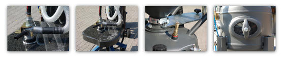 - Dönthető porszívó az elhasználódott szemcsék könnyű ürítéséhez